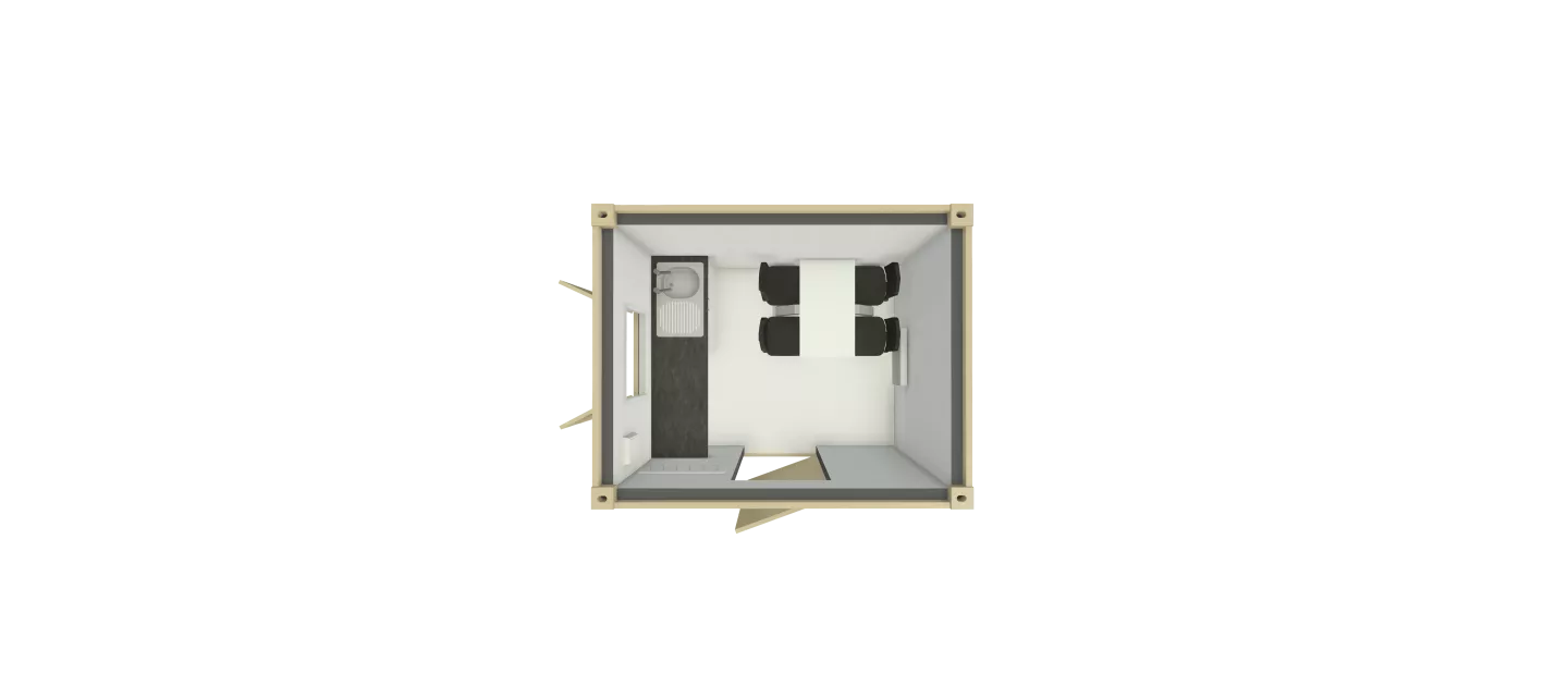 The 10’ x 9’ portable canteen provides a well-organised internal layout with fixed bench seating and table space designed to make daily breaks comfortable and convenient. The unit’s durable internal finishes are easy to clean and withstand constant use on site.
